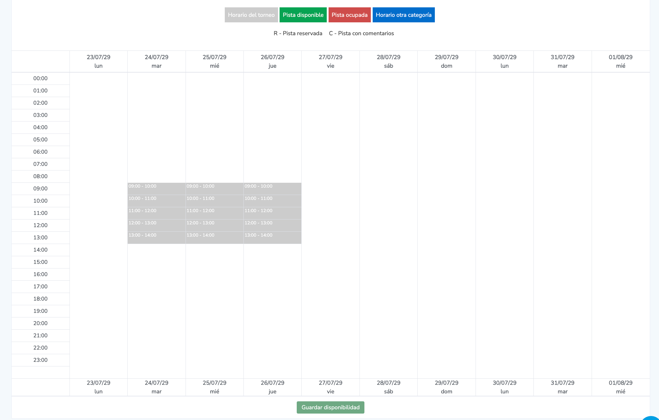 La disponibilidad es donde decides qué horas de esa parrilla realmente se pueden usar para el torneo.
