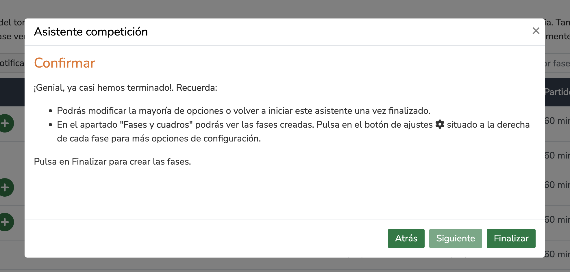 Esta configuración también estará disponible en la configuración de fases y podrás revisarla y modificarla más adelante.